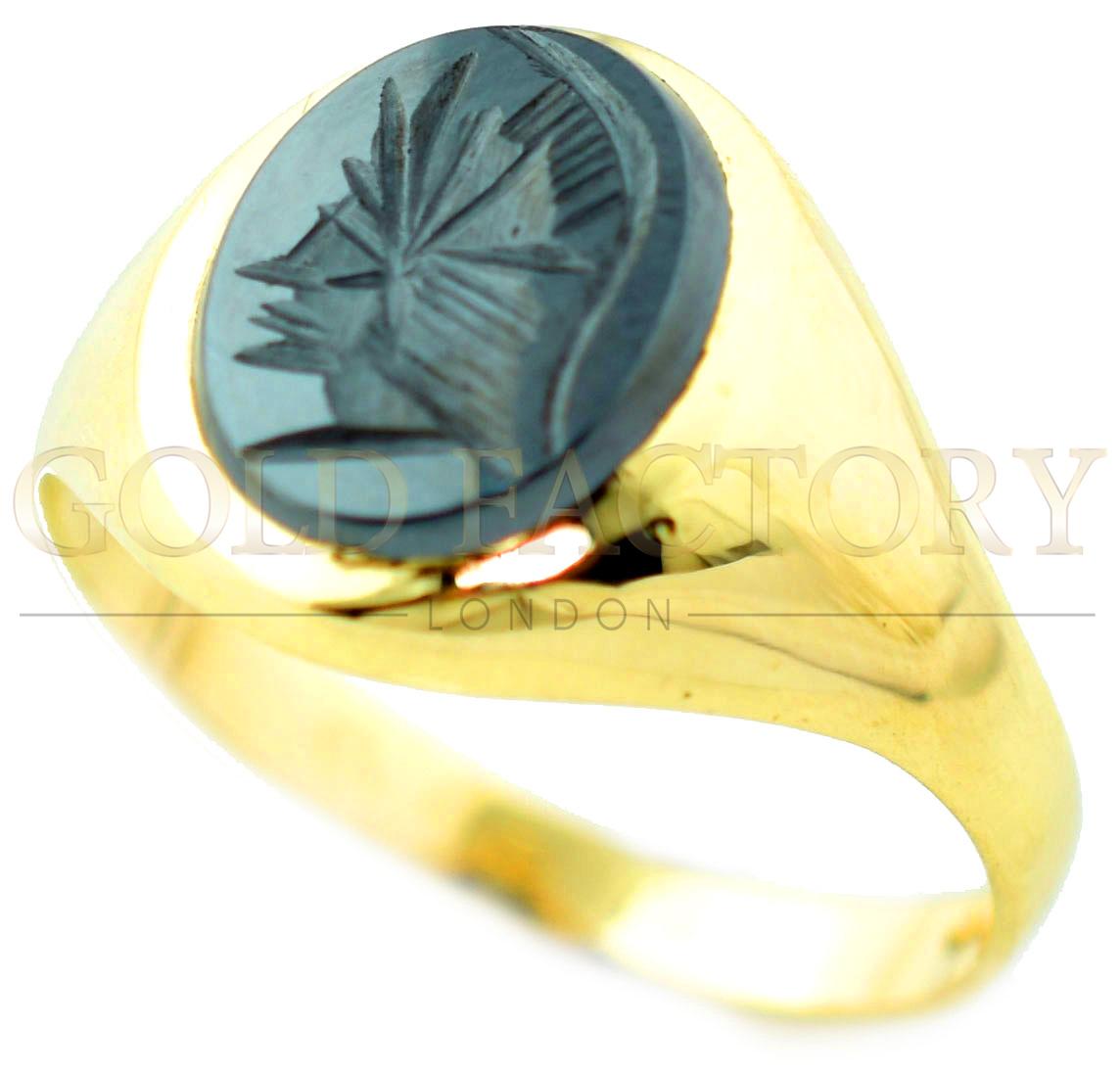 Carved Black Stone Gold Ring